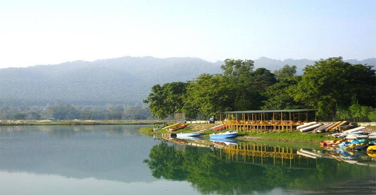 The Tapkeshwar Temple is a gentle amalgam of manmade and natural design. It is situated between two gentle hills, while the main sanctum is contained within the bounds of a naturally occurring cave. The architecture itself pertains to typical Hindu style and is a humble edifice with a simple and small facade.